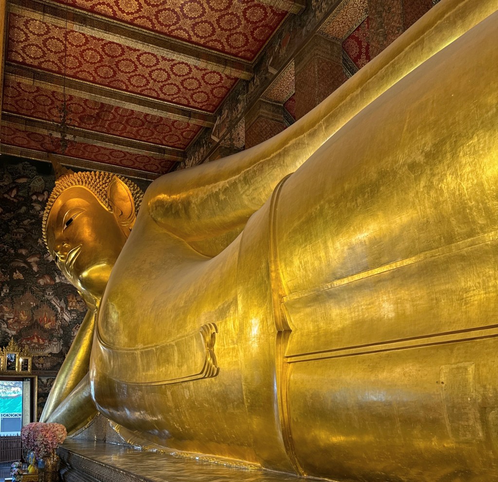 What you didn’t see in my reels were the mass of humanity at every temple, people in line to remove and store their shoes to enter a holy place, standing shoulder to shoulder, reaching around one another to snag a peaceful pic of Buddha, while trying to abide the pick-pocket warning signs by ensuring your phone and wallet are in front pockets. Everything else zipped up tightly in a cross-body bag. I didn’t post that many of the pics of Phi-Phi Islands were taken waterside because the beaches were so overcrowded with boats, we couldn’t dock without waiting for a half hour in the baking sun only to then fight three or four other boats for an open slot to anchor. When we did manage to find a slice of beach at this “hidden” beach, we pissed off about 20 swimmers and snorkelers who were using that only open area of beach and ocean to get wet and cool off. There was an audible groan when we approached because there was nowhere left to swim unless you dared swim between the mix of speedboats and long boats. And don’t get me started about “Monkey Island”; it was so overcrowded that there were at least 12 humans with iPhones for every monkey on the beach. I looked from the water at these monkeys, sitting on the beach or on a rock with at least six iPhones shoved in their faces. Snap, snap, snap, turn landscape, snap, snap, now take video, flip, and take a selfie holding two fingers up (what in the hell does that even mean?!?). You won’t see that shit show on Insta. The entire scene made me so uncomfortable I just stopped getting off the boat. I was disgusted with the tourists and with myself. And I was angry about the damage we were doing to these beautiful places, not to mention we were ruining one another’s “get away from it all.”